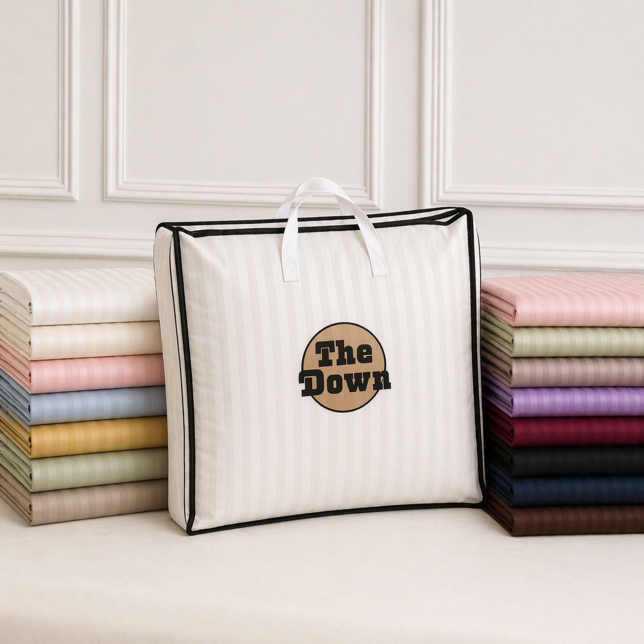 Except for the goose down inside the comforter, everything in this 8 PC bed in a bag is made of sumptuous, 100 percent Egyptian cotton. We carry sizes from Full to California King, and each size has your choice of thread counts ranging from 300 all the way up to an incredible 1500.